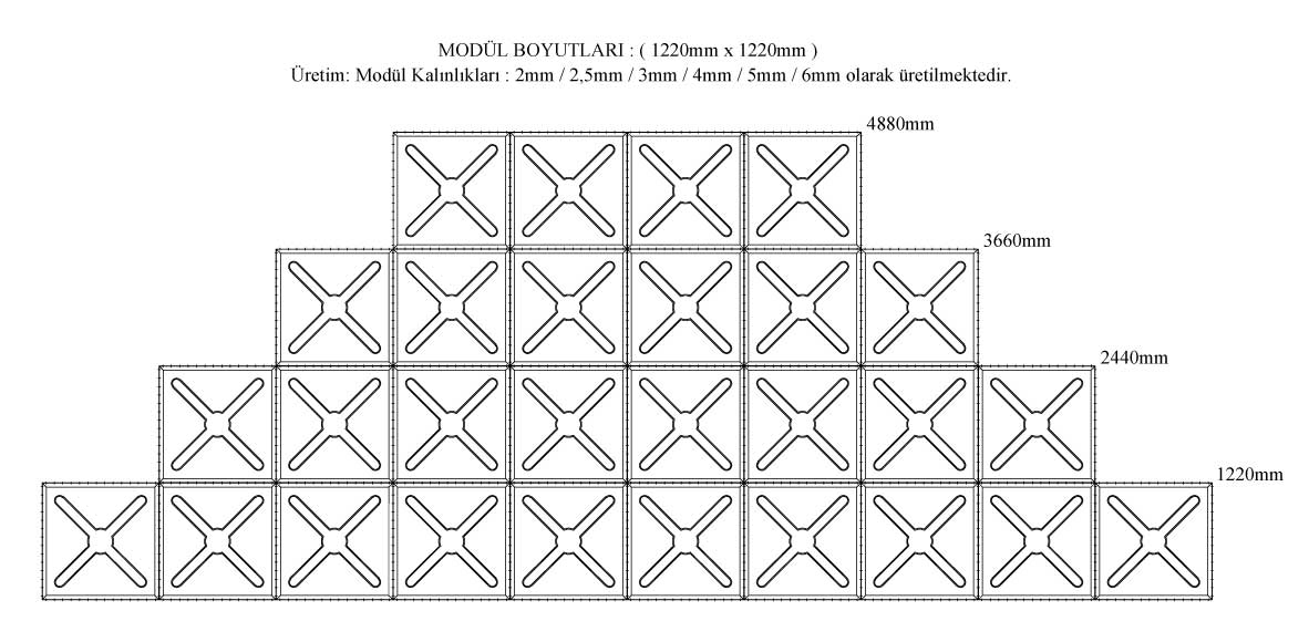 Yükseklik maksimum 4880 mm olarak uygulanabilir; fakat en ve boy ölçüleri istenildiği kadar arttırılabilir.